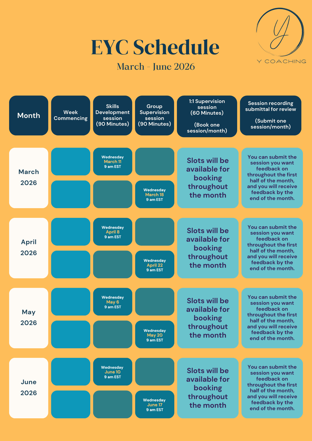 EYC (Elevate Your Coaching) is a 20-hour, 4-month program that blends advanced