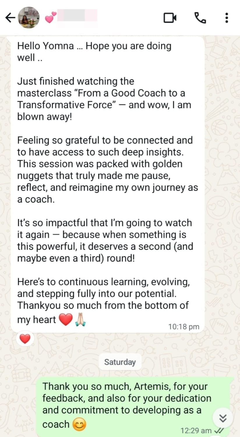 With over 9 years of experience in coaching, and over 7 years of training, mentoring and supervising coaches, Yomna has helped hundreds of coaches elevate their practice, transform on the personal and professional levels, and become confident in their coaching skills.